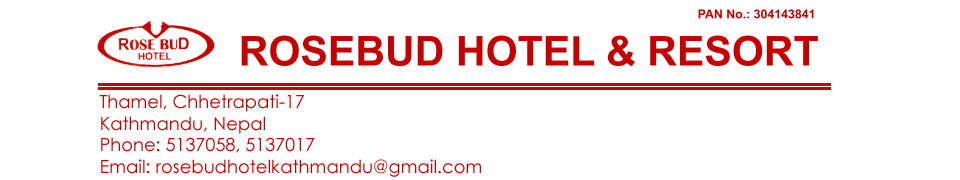 Rosebud Hotel is 15 mins drive from airport and is in a walking distance from most of the attractions like monkey temple, Garden of Dreams, King Palace and Durbar square.